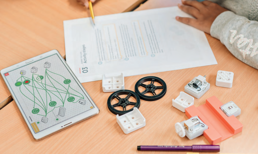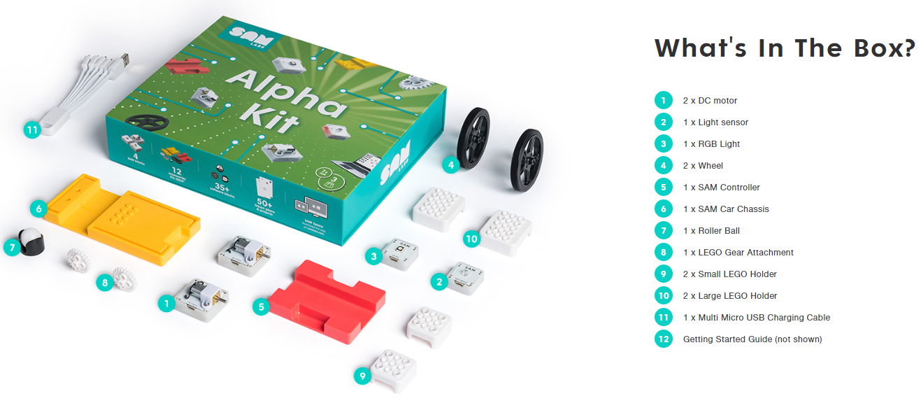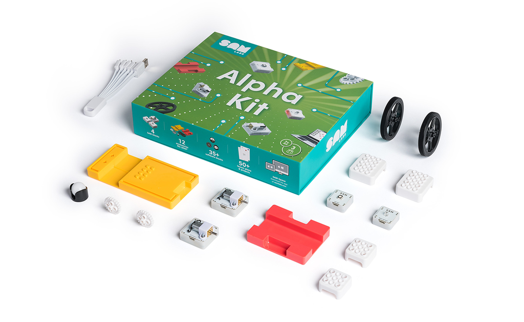An introductory STEAM lesson kit comprised of a variety of teaching materials, a flow-based coding app and a number of wireless electronic blocks and accessories. Use the SAM Blocks and the SAM Space app to build classroom projects with your students and complete lesson plans.